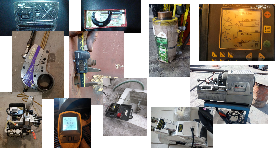Equipos Mecánicos: contamos con equipos HYTORC, herramientas mecánicas, neumáticas, eléctricas, instrumentación y metrología.